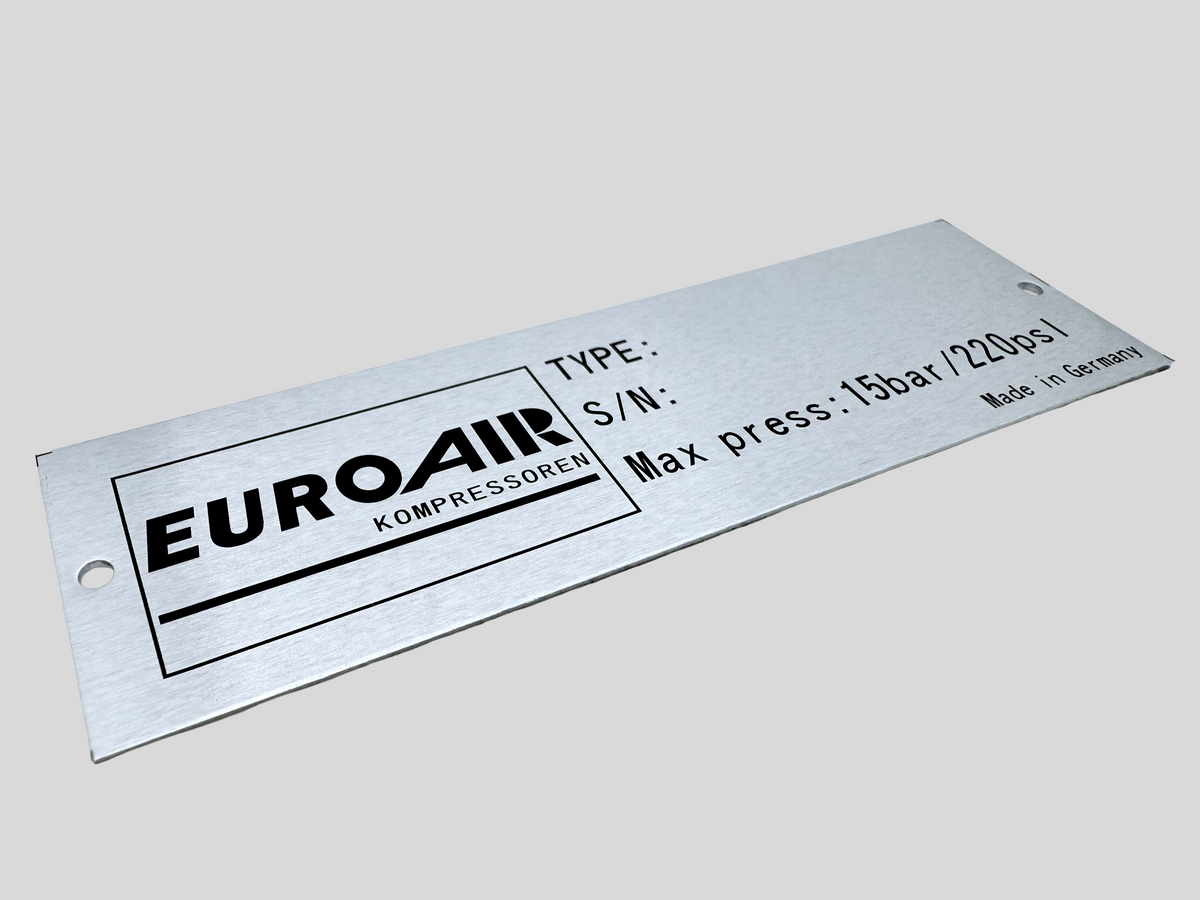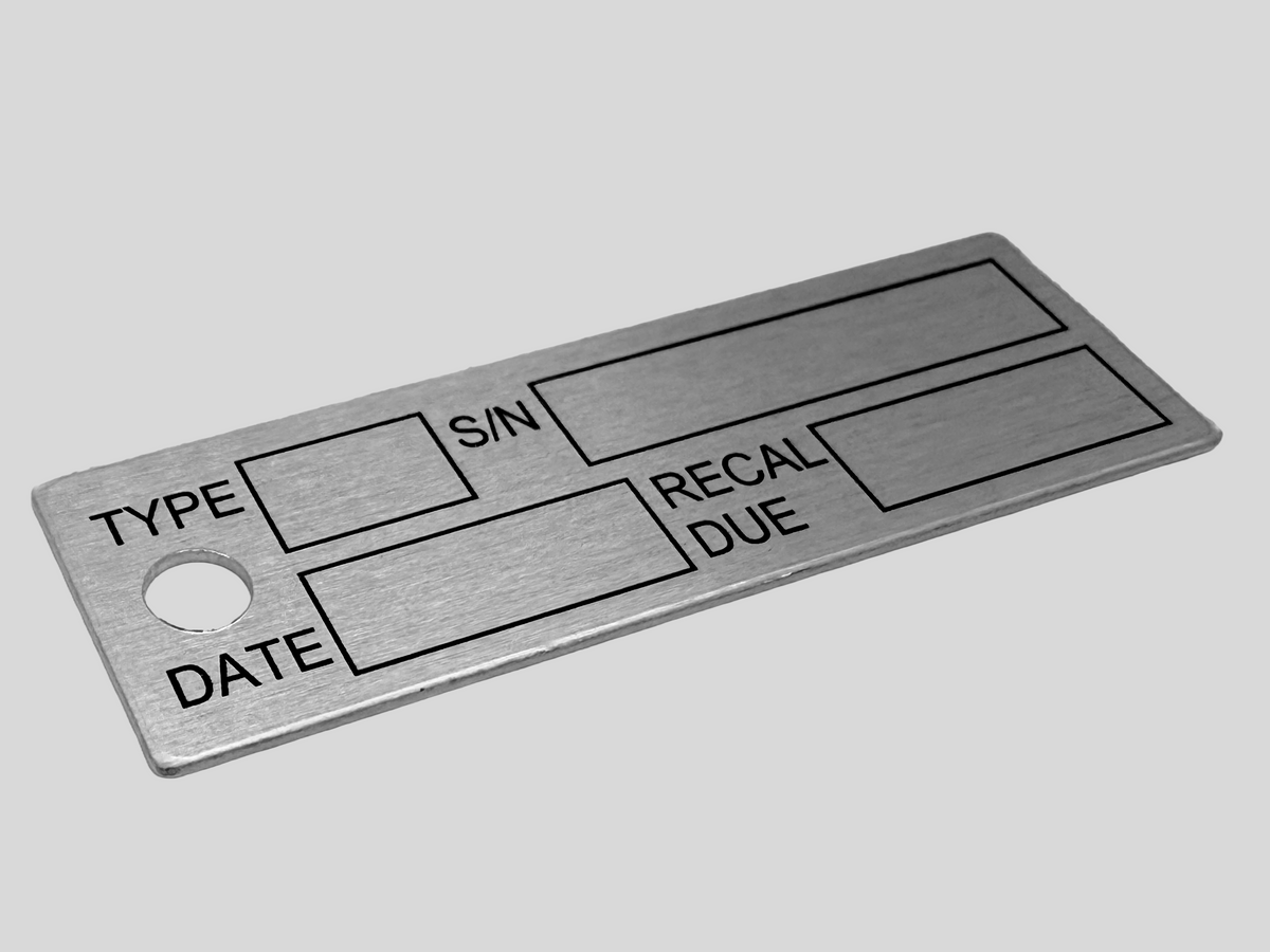 Screen printing using tough, UV-resistant inks to create bold, lasting graphics on metal tags. Perfect for identification going on industrial equipment, control panels, and outdoor machinery.